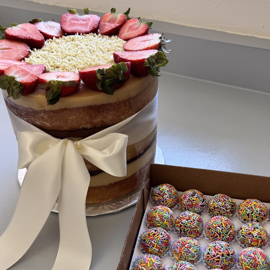 Includes a cake and 25 Brigadeiros of your choice.
