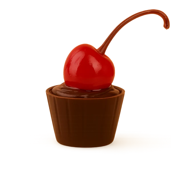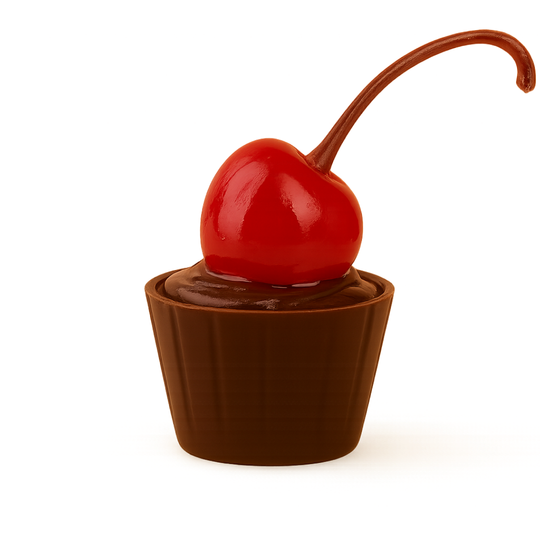 A silky-smooth Belgian chocolate brigadeiro served in a mini cup and topped with a bright maraschino cherry. It’s rich, fudgy, and creamy — like a little chocolate shot of joy, with a sweet pop of cherry on top.