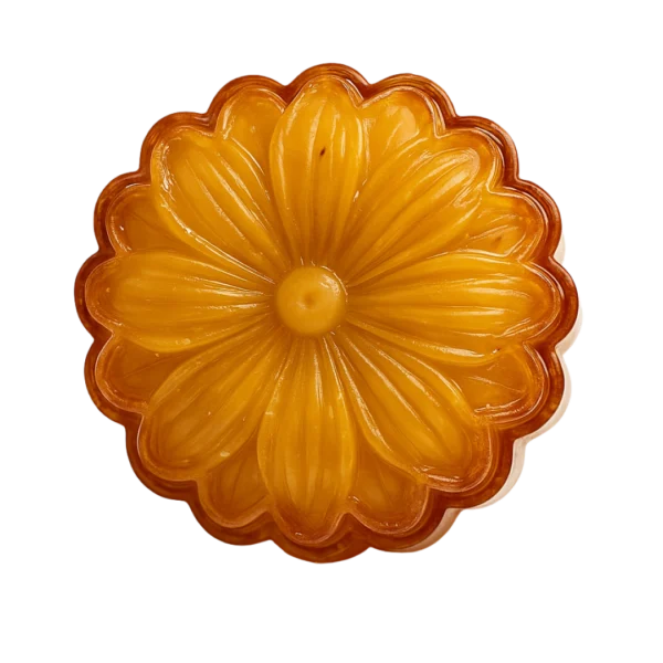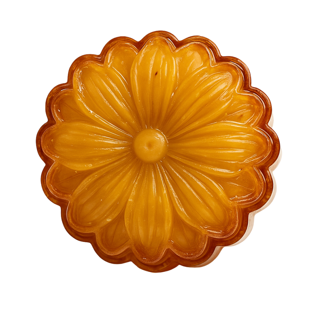 It looks like a little flower, but it’s made of sliced almonds! We lightly toast the almonds and coat them in golden caramel, shaping them into a beautiful bloom. It’s crunchy, sweet, and slightly nutty – like a caramel almond brittle, but prettier.